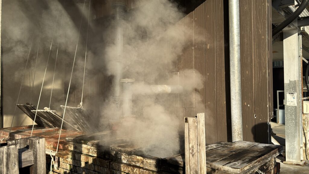 調味料は、良質な塩と地元産の醤油に先程買った路地ものの柚子を一絞り。焼けば焦げるし、煮れば味が逃げる。 「蒸す」という調理法は、素材へのダメージを最小限に抑えつつ、そのポテンシャルを最大限に引き出す、最も理にかなった「引き算の料理」だと痛感する。そして小浜の温泉の湯気には、とんでもない隠し味が。海が近いために湯気にいい感じの塩分を含んでいるのだ。