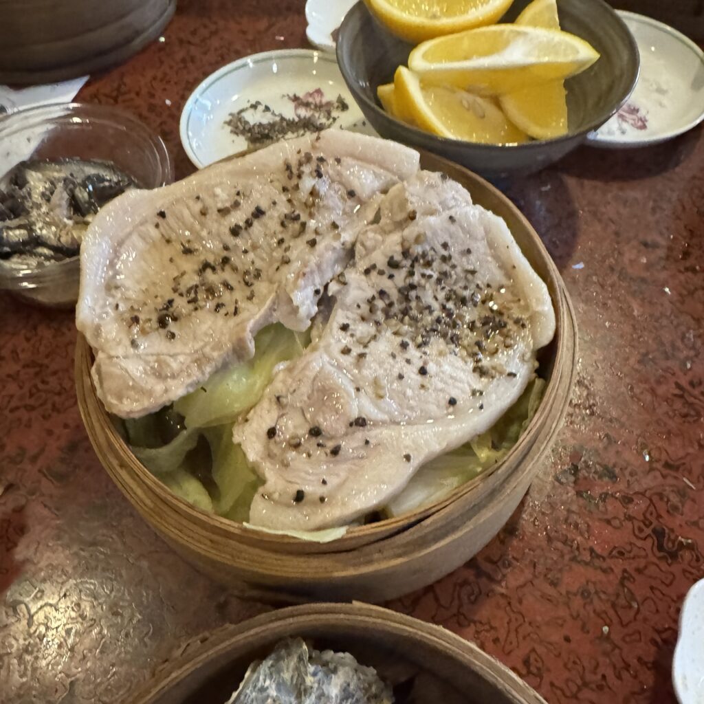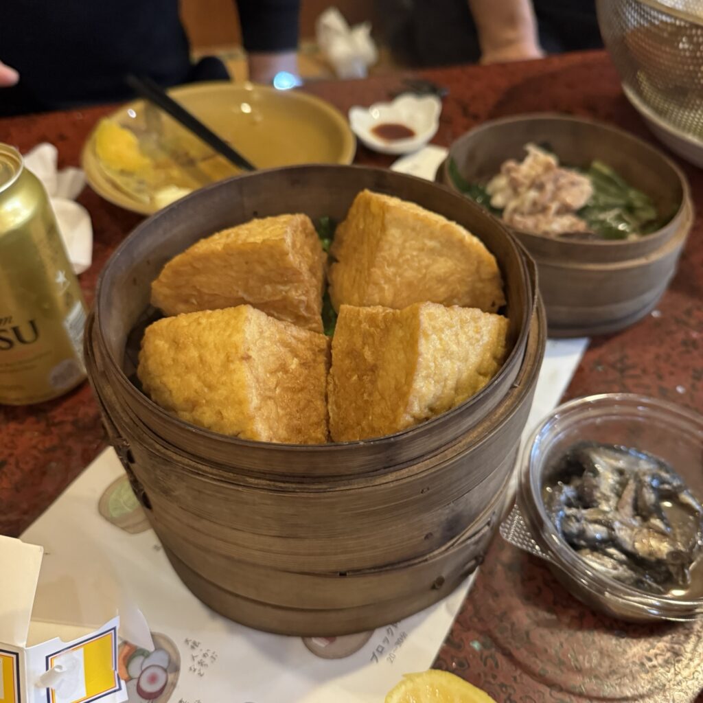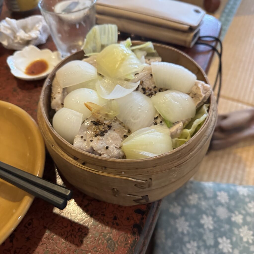 蒸し上がった食材を部屋に運び、酒を開ける。 まずは豚肉。余分な脂が落ち、繊維が解けるように柔らかい。 そして地魚。身がふっくらとして、凝縮された旨味が口の中で爆発する。 森崎豆腐店の厚揚げは、温まることで油が程よく抜け、甘みが活性化し、もはやスイーツのようだ。